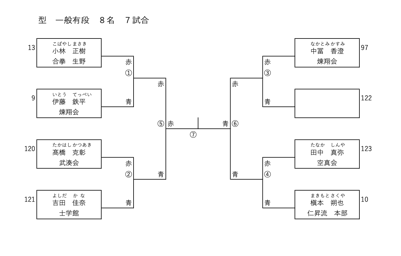 HOME ≫ トーナメント ≫ 第3回大阪府硬式空手道選手権大会 トーナメント表 型 ≫